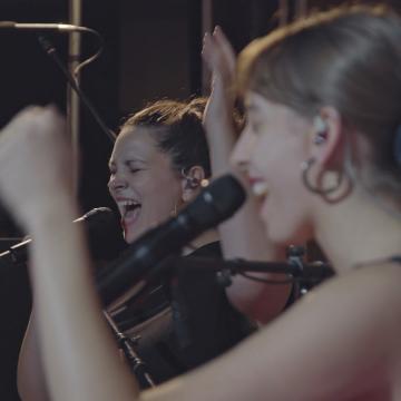 Deux voix singulières se mêlent dans une polyphonie hypnotique portée par la pulsation des tambourins à cordes, des pieds et des mains. Dans un face à face percutant, les deux musiciennes livrent leurs personnalités vocales complémentaires, tressées par 10 ans de complicité artistique.