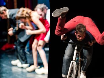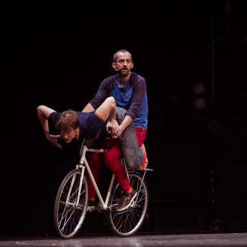 Un duo iconoclaste partage ses propres pratiques, pourtant distinctes : le théâtre et le cirque (ici le vélo acrobatique). Il ne s’agit pas pour autant d’en privilégier une pour amoindrir l’autre. C’est tout autant une véritable confrontation qu’une réelle volonté de faire toute la place à l’autre. L’enjeu est bien de devoir faire avec. La parole se construit à deux, cela les déplace dans le débat mais également dans la voltige. L’esthétique naît de là. C’est en abordant le développement durable, les fausses origines des fameuses études de genre et les mystères de l’identité sexuelle que ce duo, en proie aux liens ambigus qui l’animent, discute à bâtons rompus de la portée réelle de nos actes politiques et militants, de la banane Fairtrade au mariage équitable (sic). Une discussion de haut vol, un exercice de haute voltige, c’est selon.