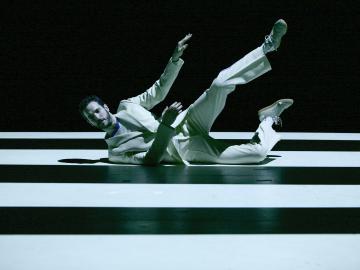 Entre odyssée, conte philosophique et récit de science-fiction, érection cherche à suivre le fil de l’évolution humaine. Dans un dispositif épuré, accompagné de sons et vidéos créés en direct, Pierre Rigal danse à la fois