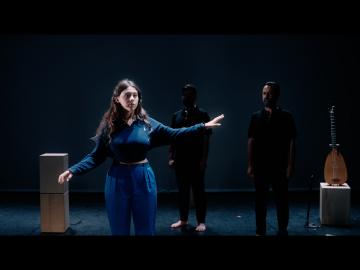 Un instrumentiste qui joue autant l’archiluth que la guitare baroque et le colascione (équivalent de la guitare basse à la Renaissance) ainsi que différentes percussions se joint aux chanteurs qui ont ici un micro et de petits instruments avec lesquels ils composent, comme par analogie avec la situation environnementale qui nous contraint à modifier et à questionner notre manière d’être au monde. Le spectacle est ainsi construit autour de trois axes principaux : le passé, vers lequel il nous est impossible de revenir, une partie centrale où tout bascule, et une fin en forme d’ouverture sur le champ des possibles.