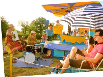 Le petit clapotis du grand large est un éco-manège à pédales qui fonctionne sans électricité. Ce bel objet en bois, en métal et en tissus est une structure originale et attrayante pour convier les enfants au rêve et au voyage. Il peut accueillir les bambins de 1 à 12 ans. Les grands trouvent aussi une place puisqu'ils pédalent à côté du manège, installés sur un pédalo. Ce sont eux qui permettent au manège de tourner, ils sont la force motrice qui donne du bonheur aux enfants !